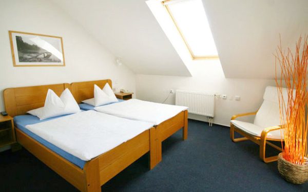 Útulný dvoulůžkový pokoj o velikosti 30 – 55 m² se dvěma oddělenými postelemi. Nabízí klidné zázemí, koupelnu s vanou nebo sprchovým koutem a samozřejmostí je i televize. Na přání vám můžeme připravit také přistýlku.