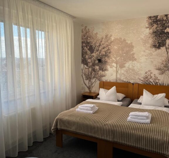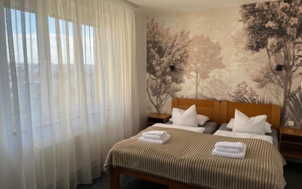 Útulný dvoulůžkový pokoj o velikosti 30 – 55 m² se dvěma oddělenými postelemi. Nabízí klidné zázemí, koupelnu s vanou nebo sprchovým koutem a samozřejmostí je i televize. Na přání vám můžeme připravit také přistýlku.
